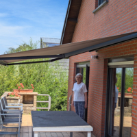 La maison étant ancienne et elle ne disposait pas d'arrivée éléctrique sur la terrasse. Nous avons donc opté pour la motorisation autonome.